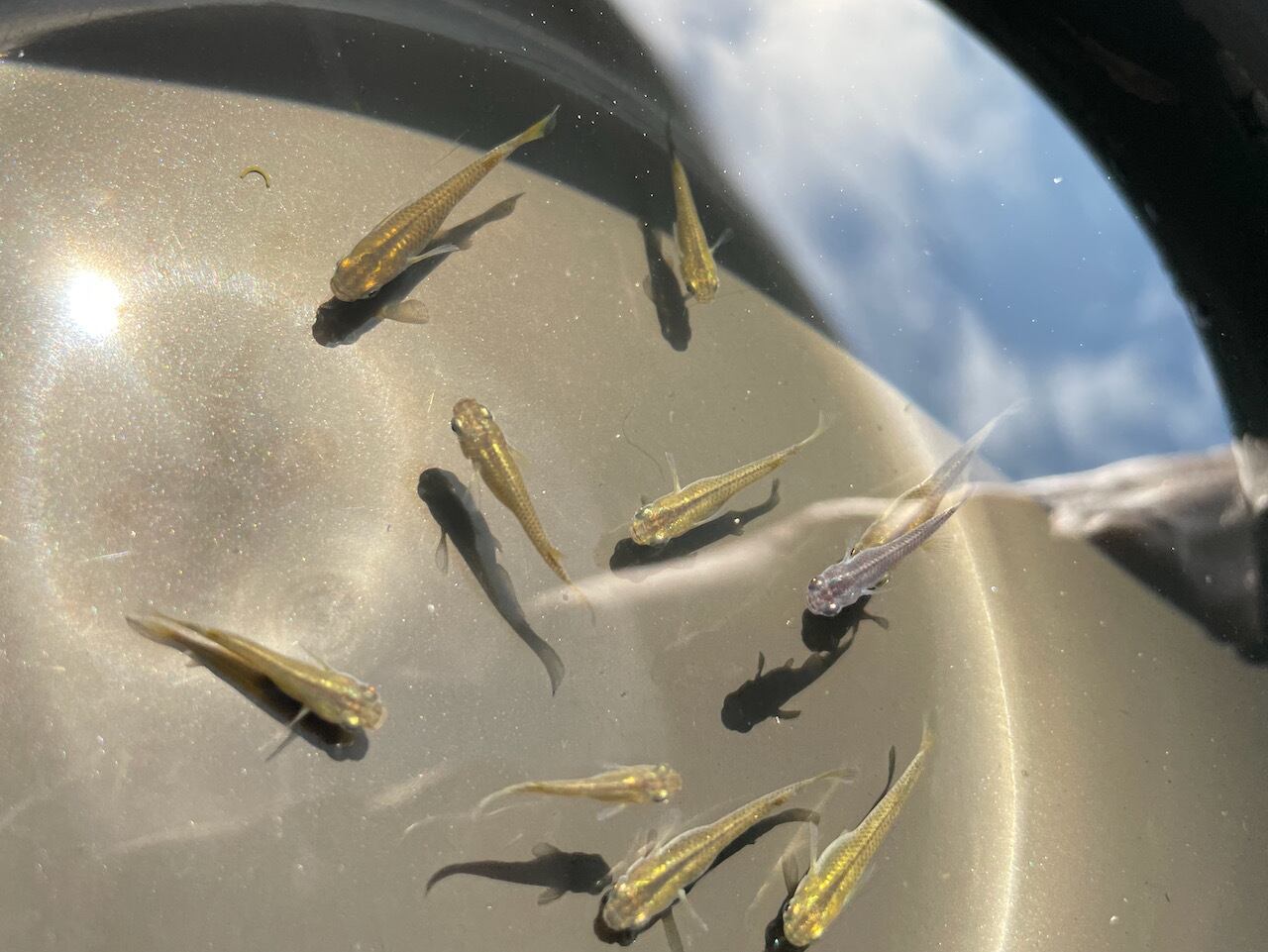 原種のメダカですのでとても元気で、網で救うのも苦労するほどです。